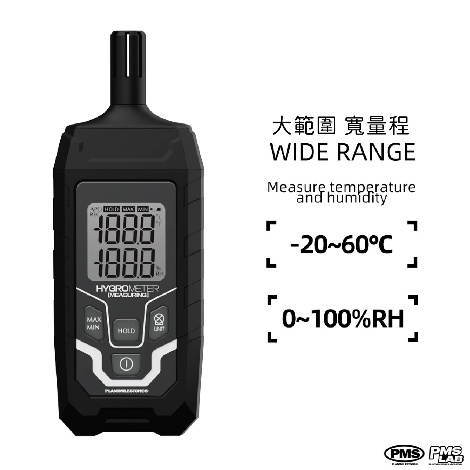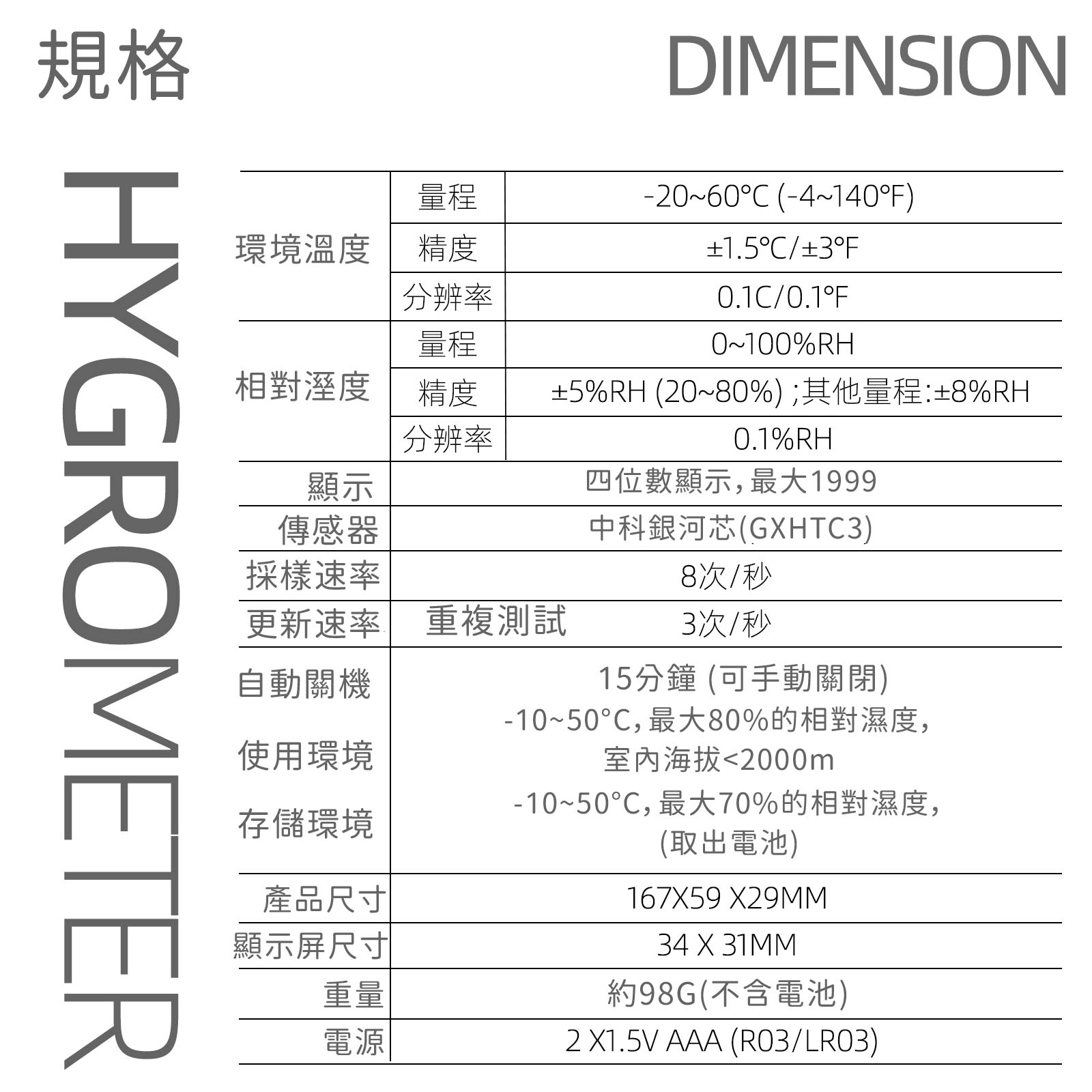 溫濕度計可檢測-20至60度C;0-100%濕度